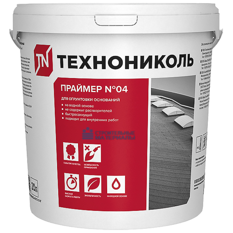 Праймер битумный эмульсионный ТЕХНОНИКОЛЬ № 04 - это готовый к применению материал, являющийся водной эмульсией нефтяного битума, модифицированного технологическими добавками. Не содержит растворителей.
