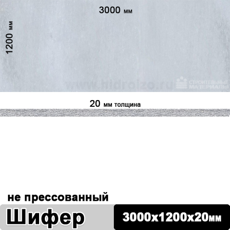 Шифер плоский непрессованный 3000х1200х20 мм