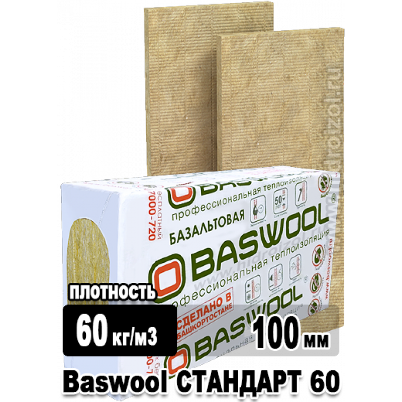 Утеплитель Baswool Стандарт 60 1200х600х100 мм 6 плит в упаковке