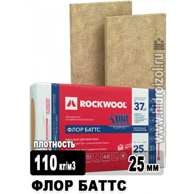 Утеплитель Rockwool Флор Баттс 1000х600х25 мм 8 плит в упаковке