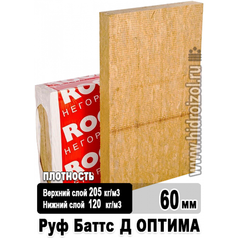 Утеплитель Rockwool Руф Баттс Д Оптима 1000х600х60 мм 4 плиты в упаковке