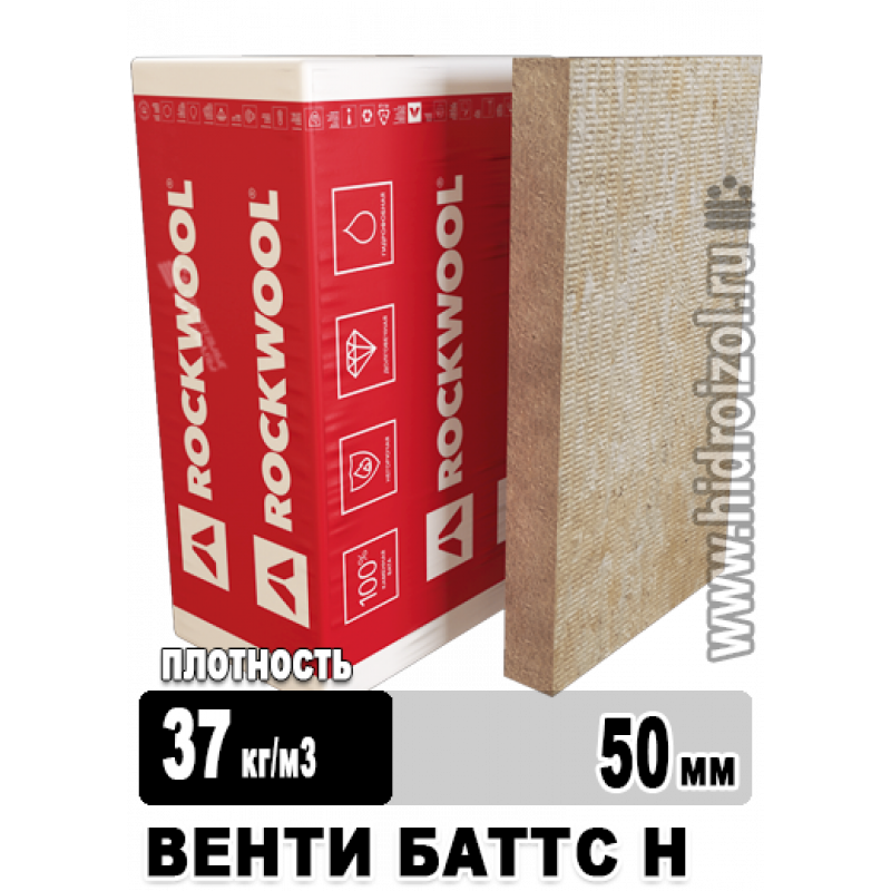 Утеплитель Rockwool Венти Баттс Н 1000х600х50 мм 10 плит в упаковке